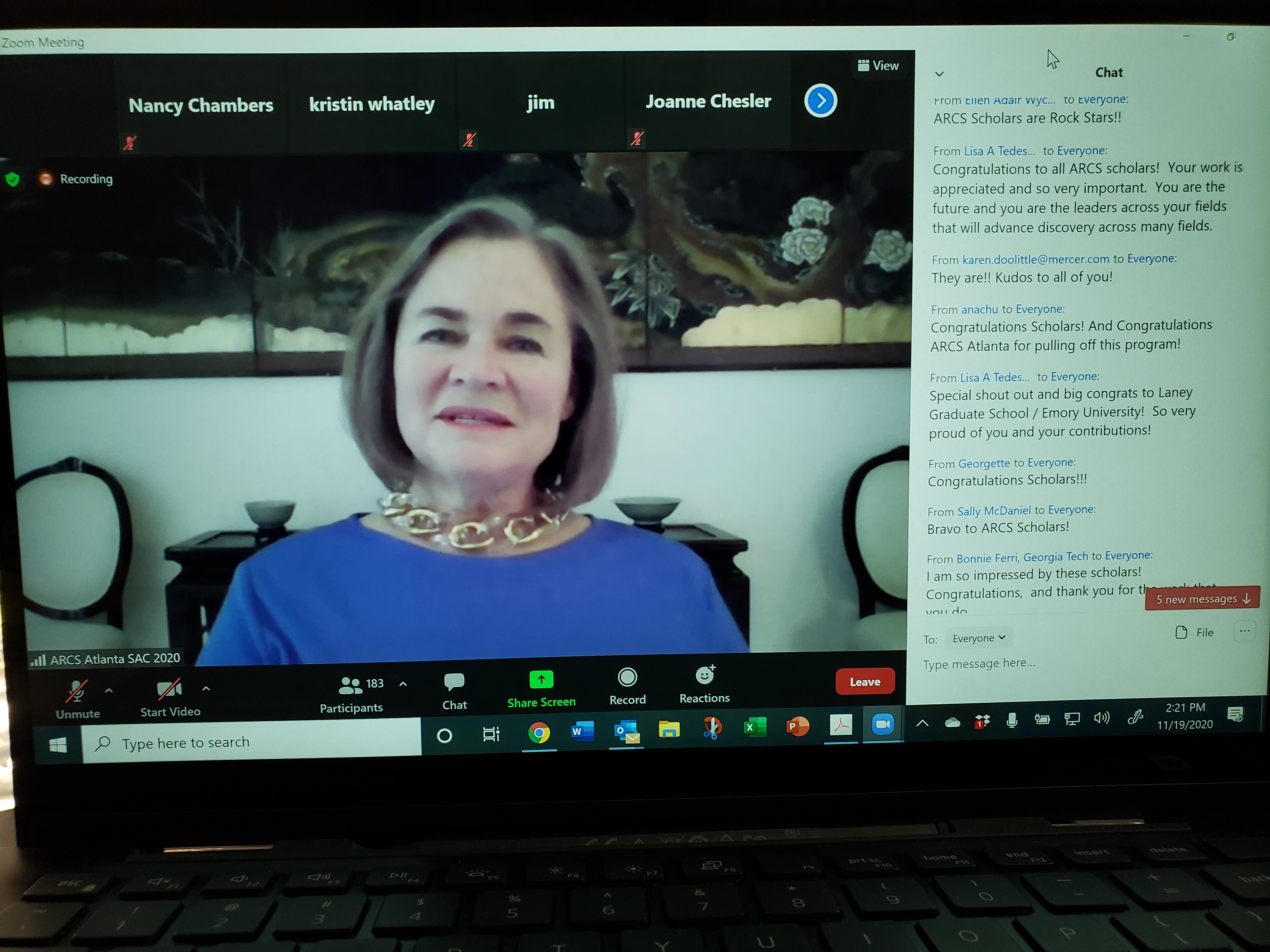 In March of 2020, the COVID-19 pandemic dictated that there could be no in-person events and all events were held virtually. The Fall Party was held via Zoom with games and breakout rooms to introduce our new members. The Scholar Awards Celebration highlighted our scholars and several major donors. There was also an excellent presentation by Dr. Ann Chahroudi on COVID-19 in Children. One very successful idea was Zoom conversations between Donors and their Scholars. Two examples of these Zoom conversations are below: