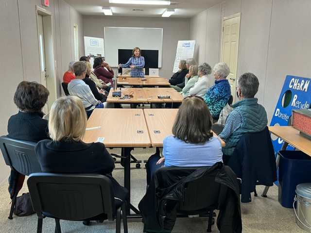 On March 29th, about 20 ARCS members went to the Center for Hard to Recycle Materials (CHaRM) for an extremely interesting and informative site visit. Peggy Whitlow Ratcliffe, the founder and executive director, gave us an overview of CHaRM’s founding and history and its impact on the community and the environment. An astounding statistic is that ninety-six percent of all items brought to CHaRM will be recycled, re-purposed or re-engineered. After hearing Peggy’s presentation and a lively Q&A, we toured the 12+ stations to see first-hand what CHaRM does with donations which would typically end up in a landfill. If you weren’t able to join us and would like to learn more about CHaRM, the items they accept and what they do with them, check out the links below:
