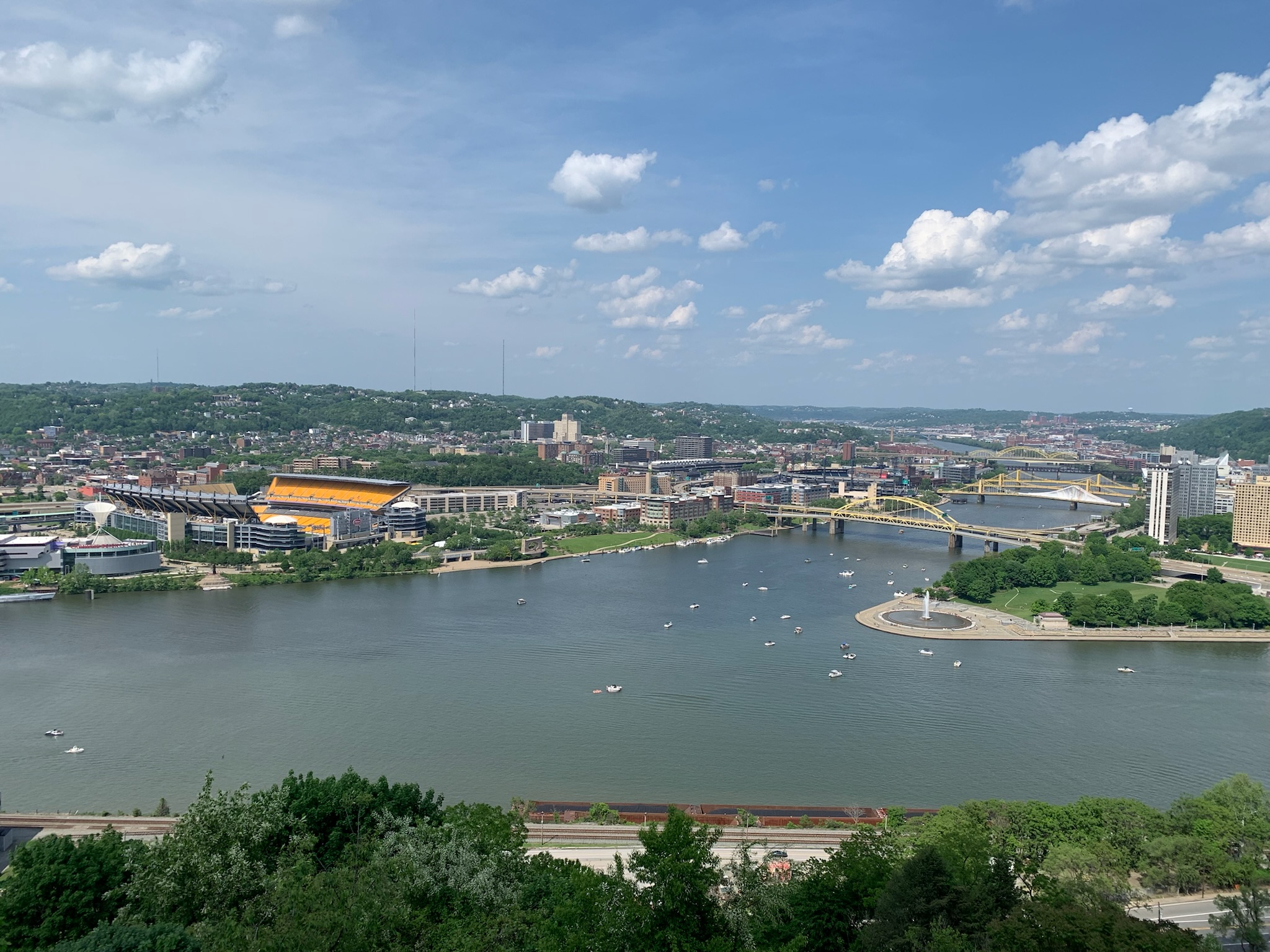 Pittsburgh is rolling verdant hills snugging in some 90 neighborhoods, the confluence of two rivers forming the mighty Ohio, a true cultural center and welcoming population. A very remarkable transformation from a grimy city of steel production and manufacturing to one of “meds & eds” and innovation & technology.