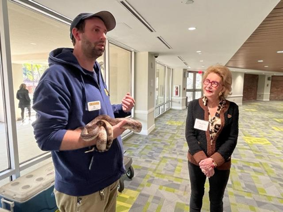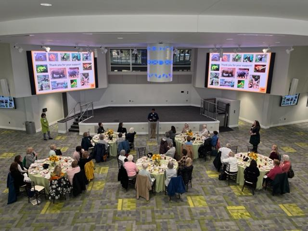 On March 15th, nearly 40 ARCS members and guests attended an ARCS Educational Event in Savanna Hall at Zoo Atlanta. After being greeted by Ambassador Animals, we enjoyed lunch and a presentation by Dr. Sam Rivera, Senior Director of Veterinary Services at Zoo Atlanta. Following lunch, there was an elephant care demonstration featuring Msholo the Elephant and an optional guided walking tour of the zoo.