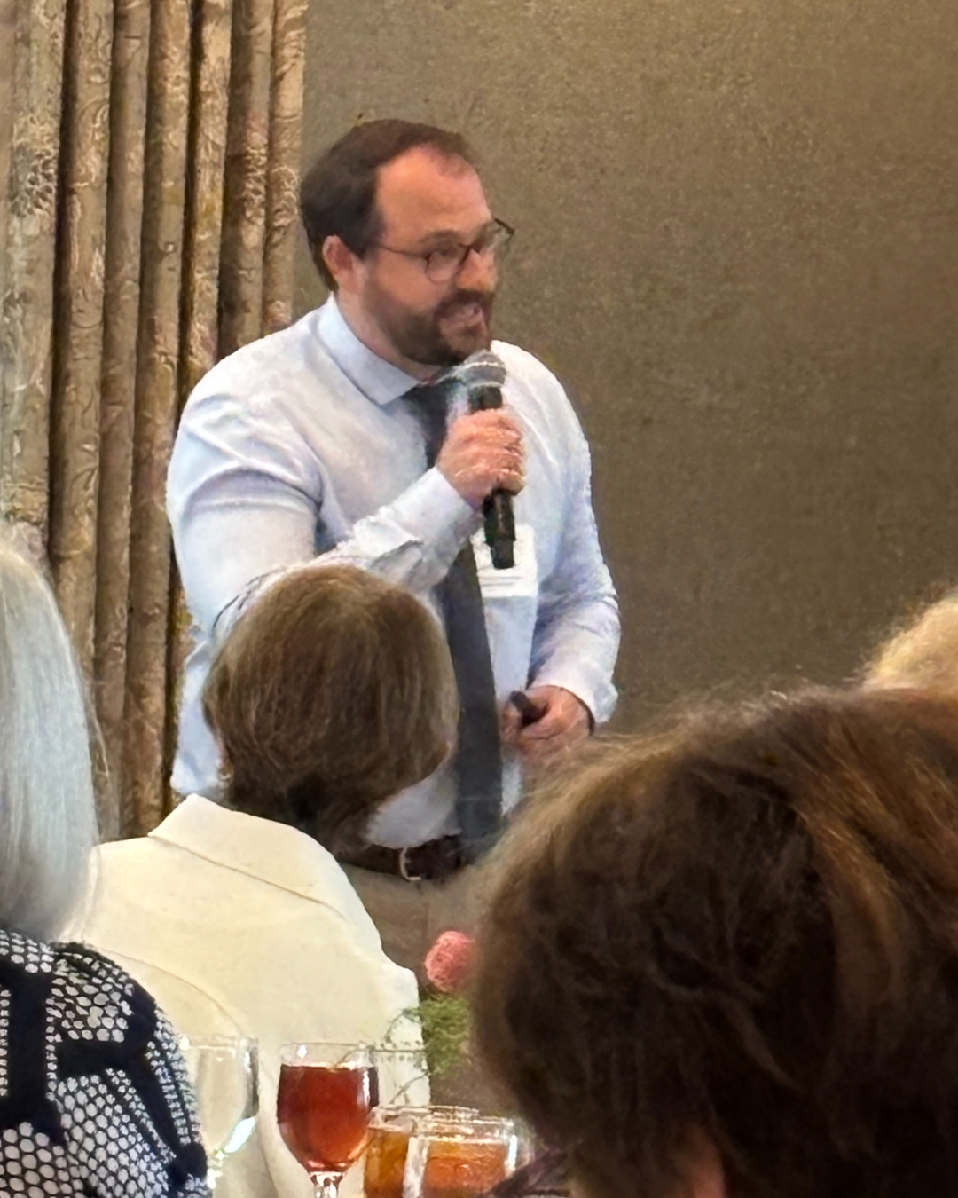 Over fifty ARCS members and guests attended the ARCS Atlanta Annual Meeting and Luncheon held on May 7, 2025, at Ansley Golf Club. Our speakers were Dr. Jon P. Mochel, Professor of Systems Pharmacology and Founding Director of Precision One Health Initiative at UGA, and Dr. Christopher Zdyrski, Research Professional of Precision One Health. Dr. Mochel and Dr. Zdyrski gave a fascinating presentation titled “Transforming Life for Man and Man’s Best Friend” on research to develop personalized healthcare strategies that provide individuals with the most effective treatment options at the right time. The mission of Precision One Health is centered on personalized medicine, which includes risk assessment, exploration of significant biological mutations, vaccine and drug development, and the selection of customized therapies based on molecular profiling.