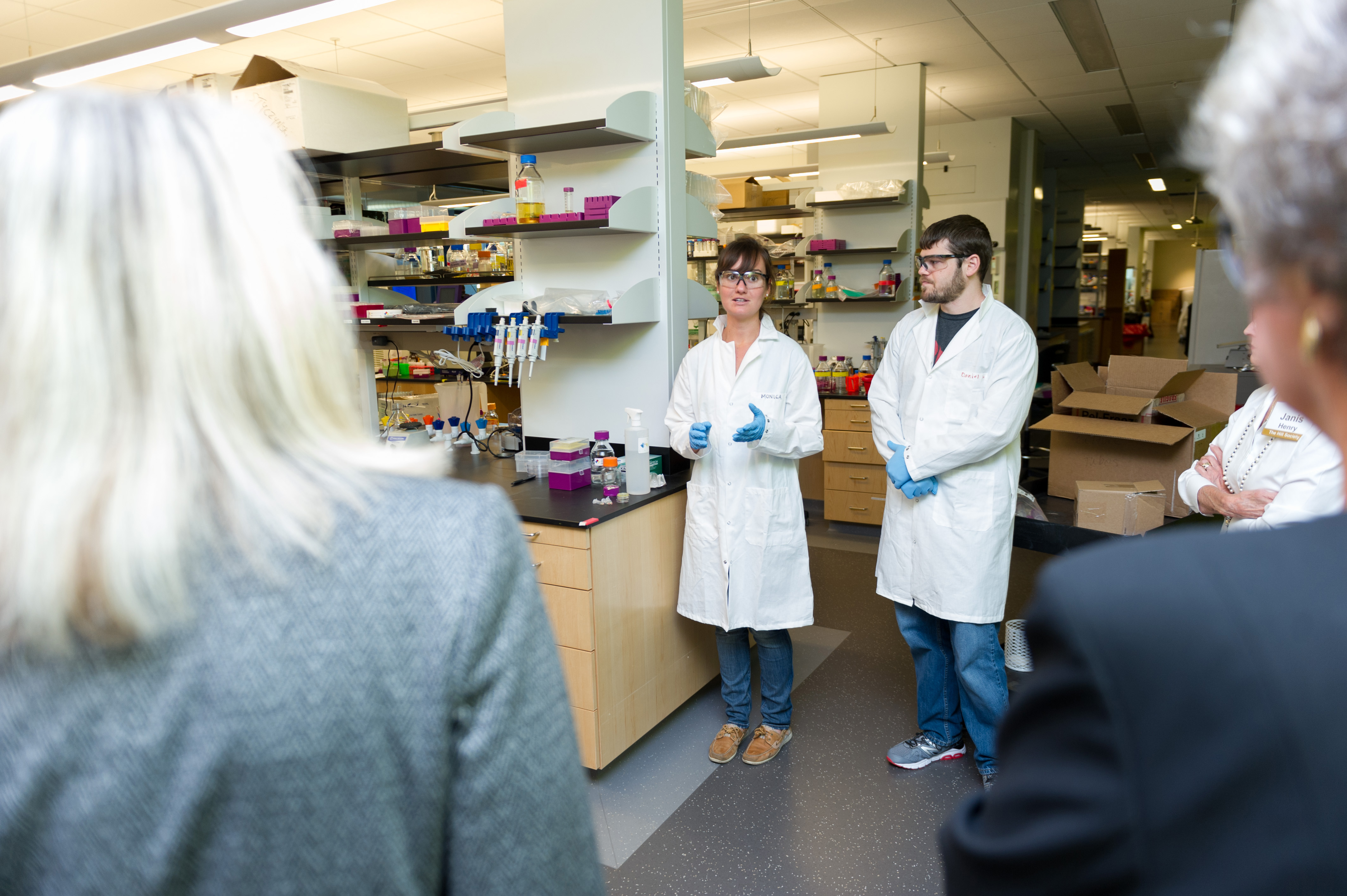 Georgia Institute of Technology hosted the Atlanta Chapter of ARCS for a tour of their new Engineered Biosystems Building and presentations by some of the researchers there. The new building features 200,000 square feet of technologically advanced laboratories and open floorplan office space to encourage collaboration between researchers across disciplinary boundries. Partnerships between faculty from Sciences, Engineering, Computing, and ultimately all Colleges, and between Georgia Tech researchers and those from Emory University, Children’s Healthcare of Atlanta, and other institutions will enable cutting edge research in biomedicine and biotechnology.