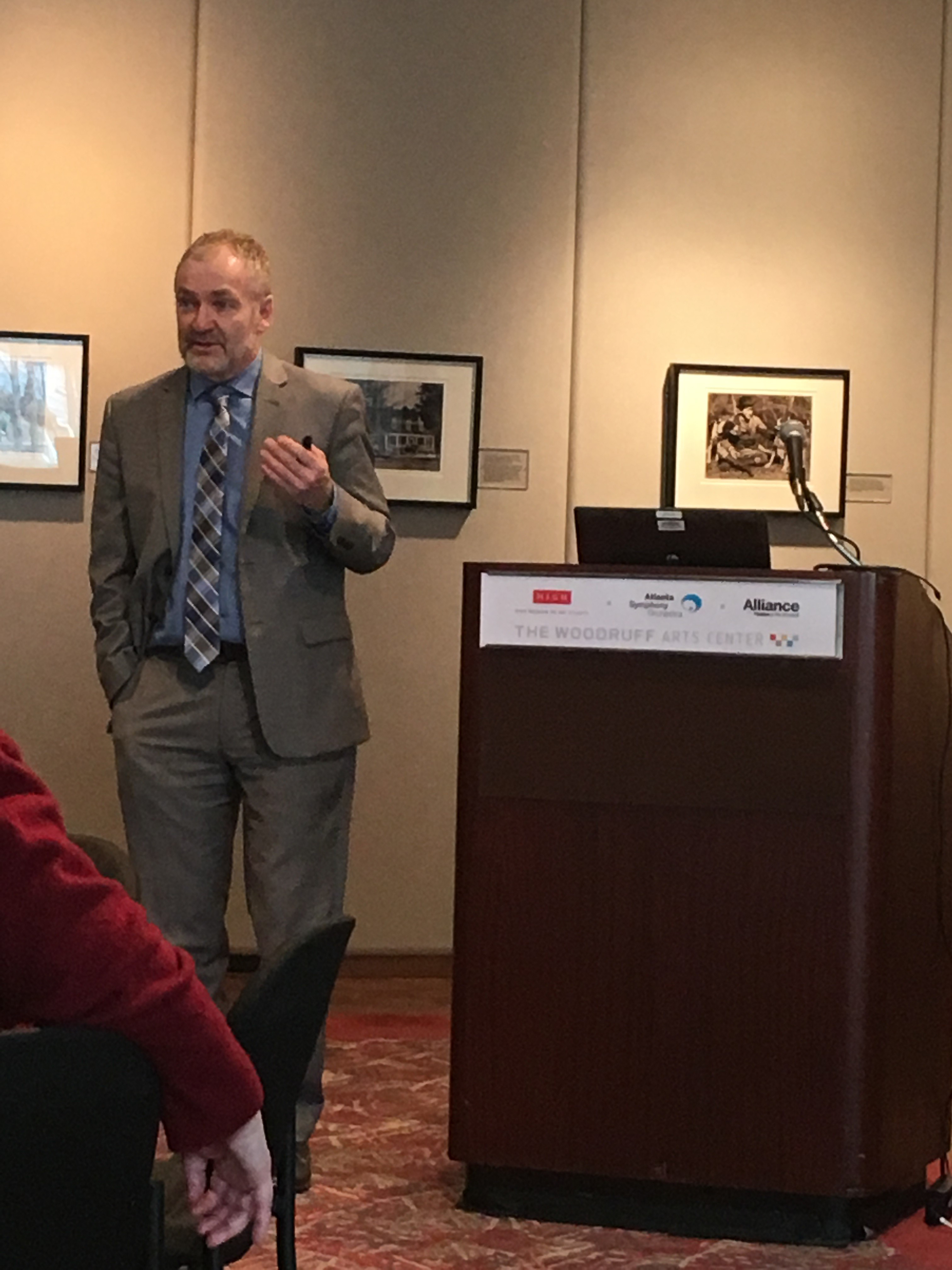 On January 10, 2018, our Winter Meeting and Luncheon was held at the Woodruff Arts Center. Our speaker was Dr. Wally Curran, Executive Director of the Winship Cancer Center at Emory University. As is our tradition, the ARCS Light for 2018 was announced. The membership was asked to submit nominations which were then voted on by the past ARCS Lights. Susan Higley is this year's ARCS Light. Gracia Conn, last year's ARCS Light presented the award to Susan.