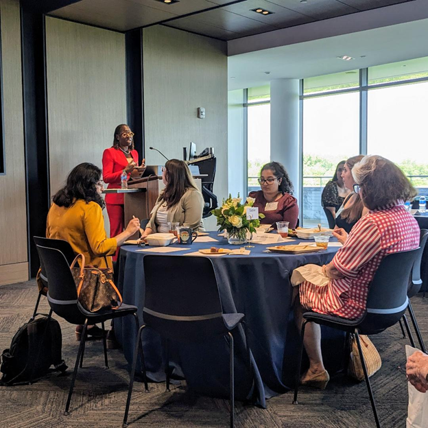ARCS board members and Emory donors paid an onsite visit in May to the brand-new Health Sciences Research Building II. The building provides lab facilities for cardiology, pediatric, pulmonary, vaccine and several other areas of research. We had a very interesting visit to Dr. Santangelo’s lab where they are studying RNA viruses and to Dr. Timov‘s lab where they provide and study 3D printing of all types of innovative and fascinating ideas like pediatric heart valves and deep brain stimulation instruments. After our tour, Emory hosted a wonderful donor appreciation luncheon where we heard from Dean Kimberly Jacob Arriola and two fantastic former ARCS scholars, Dr. Elizabeth Sajewski and Dr. Hemali Oza, who spoke about the impact the ARCS Award had on their lives and the wonderful friendships they have with ARCS members and other scholars.