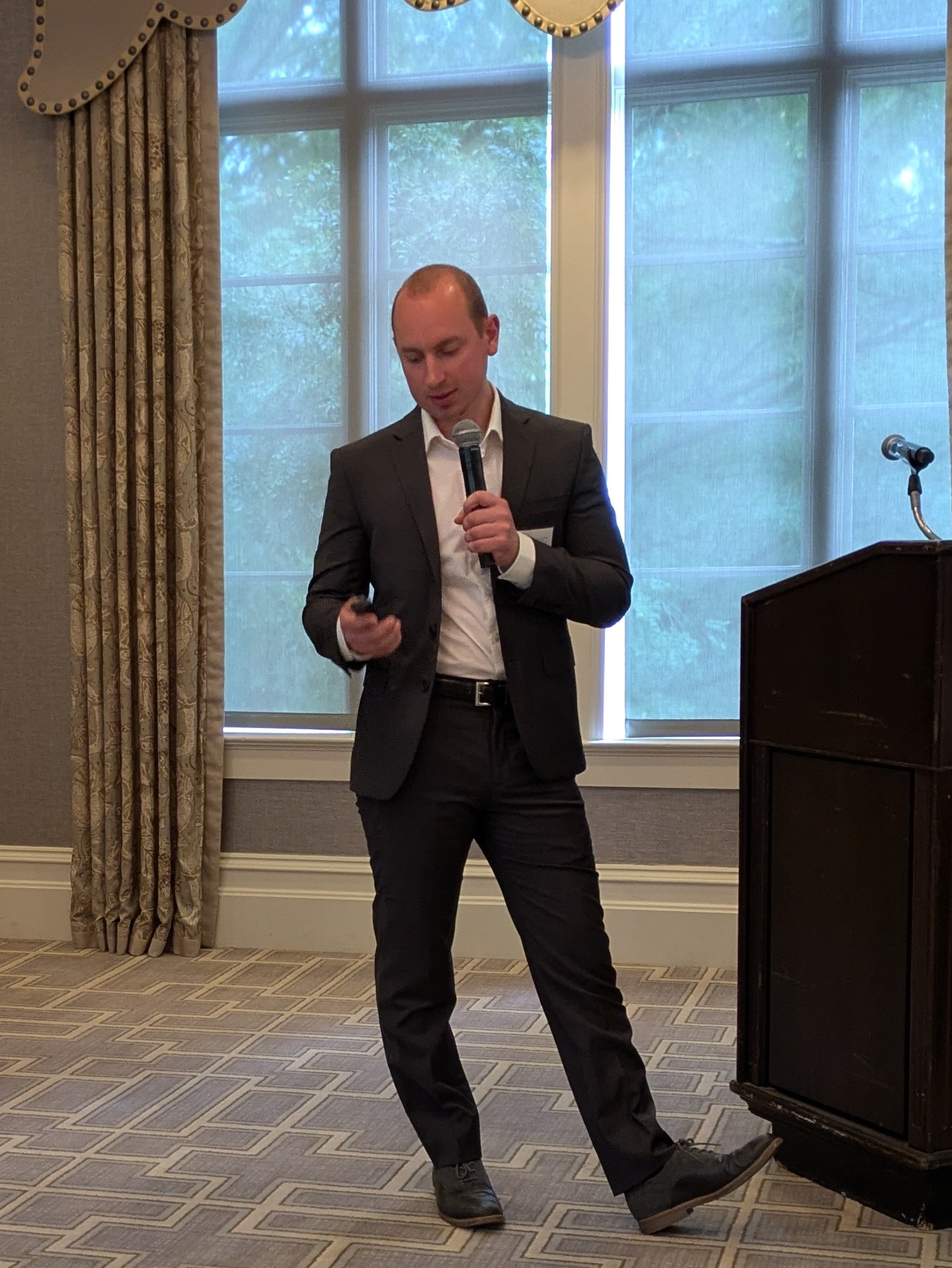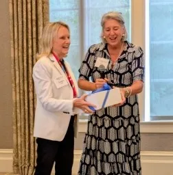Our chapter’s annual meeting was held on May 7th at the Ansley Golf Club. The highlight of the day was the presentation from two scientists at the UGA School of Veterinary Medicine. Dr. Jon Mochel started us off with an overview of Precision One Health and what they do. Currently, they are personalizing treatment for patients at the hospital with several diseases including cancer, Alzheimer’s and liver disease. Dr. Chris Zdyrski detailed exactly how the process works. What is most impressive is that all the research is done in the lab with stem cells they grow in-house. No animals are harmed as they develop the best method of treatment for each patient. With cells taken from a biopsy or sometimes simply from a urine sample, they can grow diseased cells in the lab. They treat these cultured cells with various drugs at different strengths to determine the best treatment plan. Dr. Zdyrski runs the lab and Dr. Mochel aggregates all the data to make it accessible to other doctors. Their research has been posted to the NIH website and is the only veterinary research to be published by NIH.