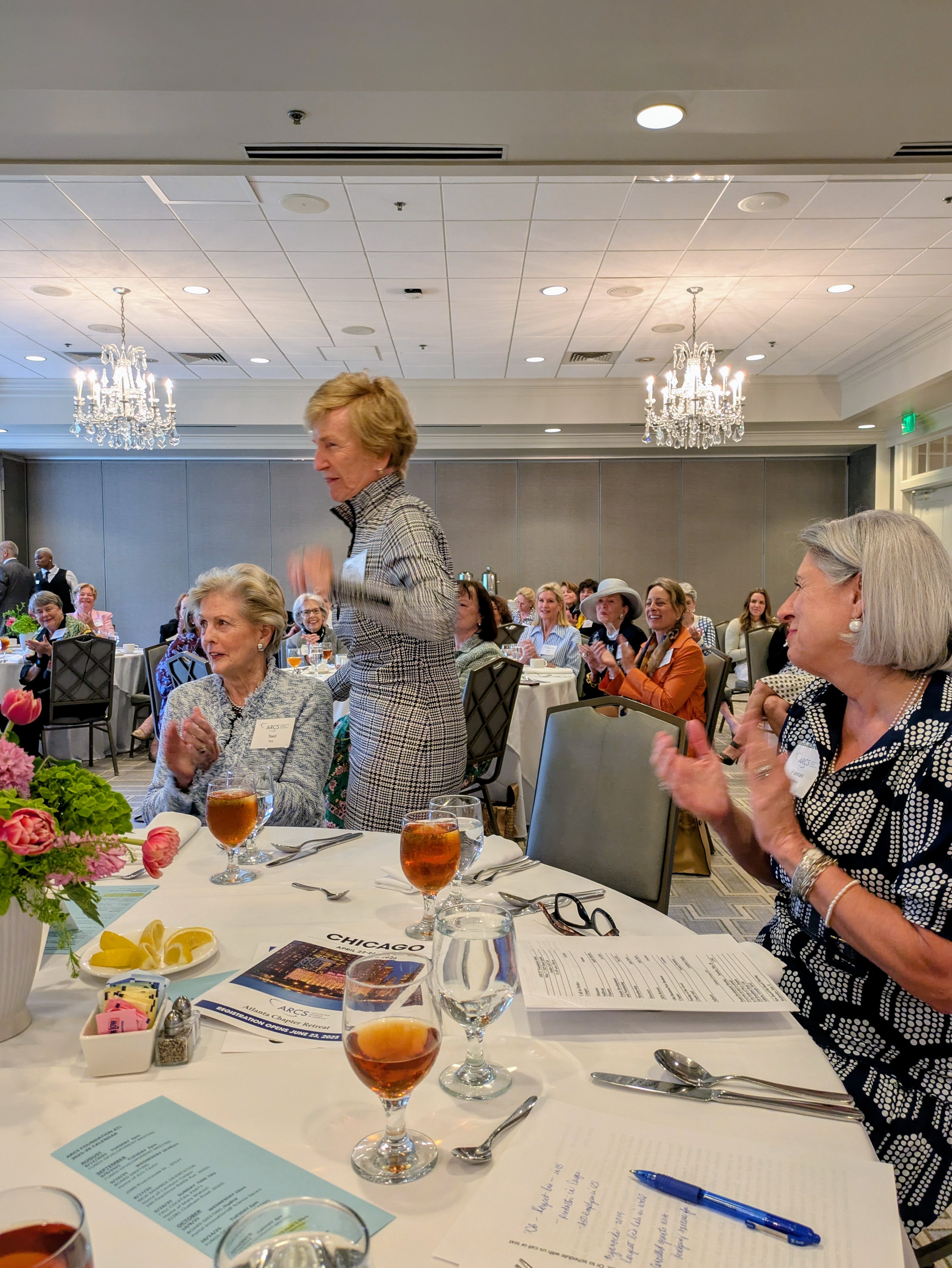 After the presentation our members and guests enjoyed a wonderful buffet lunch, and the chapter held a brief business meeting. Angelle Hamilton assured the group that the Atlanta chapter remains in great financial shape. Our conservative investment strategy has proved to be the correct choice as we have not seen the same rate of decline as the market in general. Lee Doyle did double duty assuring the chapter that fund raising remains strong and also delivering the nominating committee report. The members in attendance wholeheartedly supported the new board. Patty Reid reminded everyone to pay their dues and to nominate new members before the end of May. The meeting concluded as Carolynn Cooper passed the gavel to the chapter’s new President, Frances Swennson.