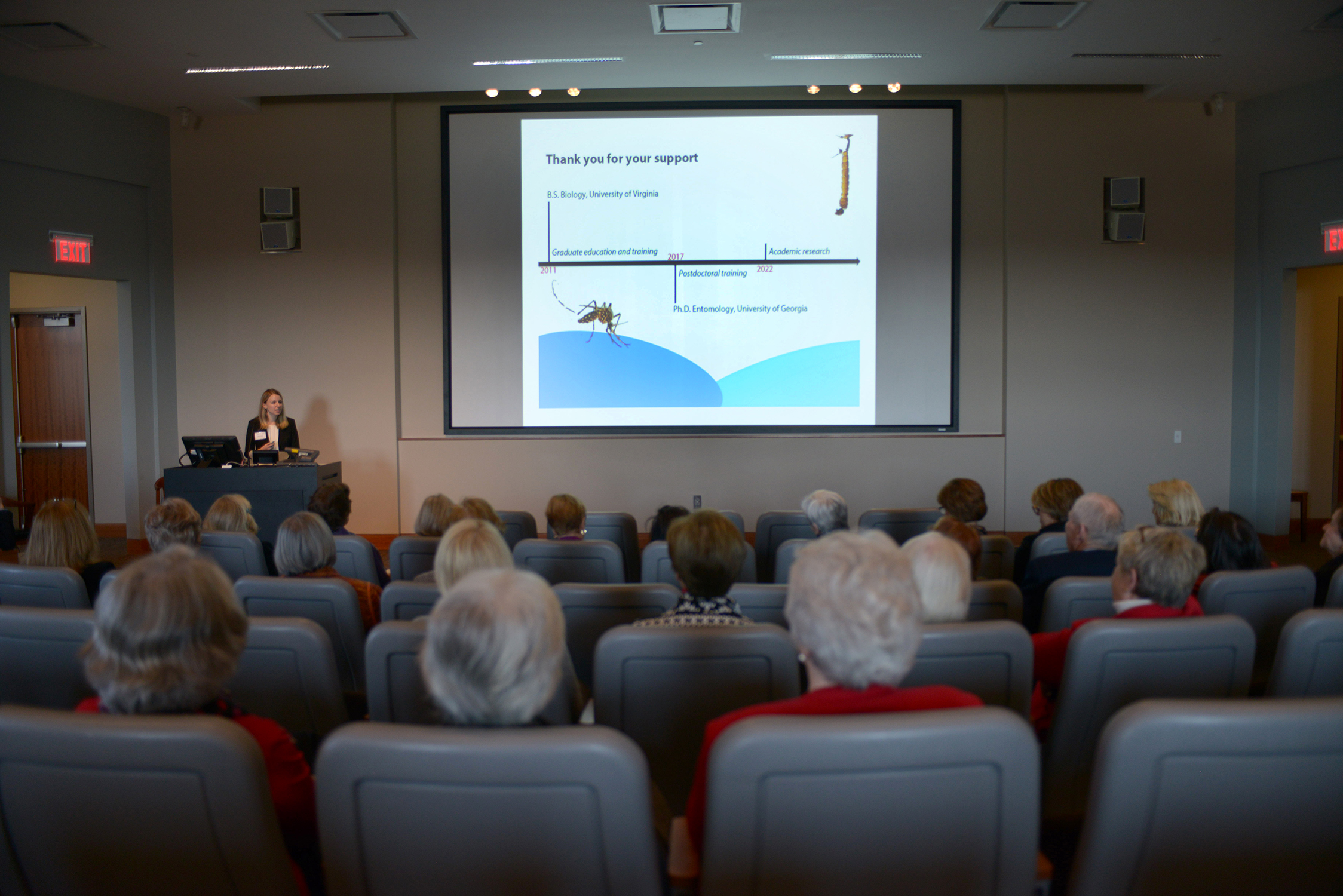 - Kerri Coon a Ph.D. candidate in the Department of Entomology presented her research on how gut bacteria contribute to the development and reproduction of disease-transmitting mosquitoes. Comments related to the Zika virus were especially timely.