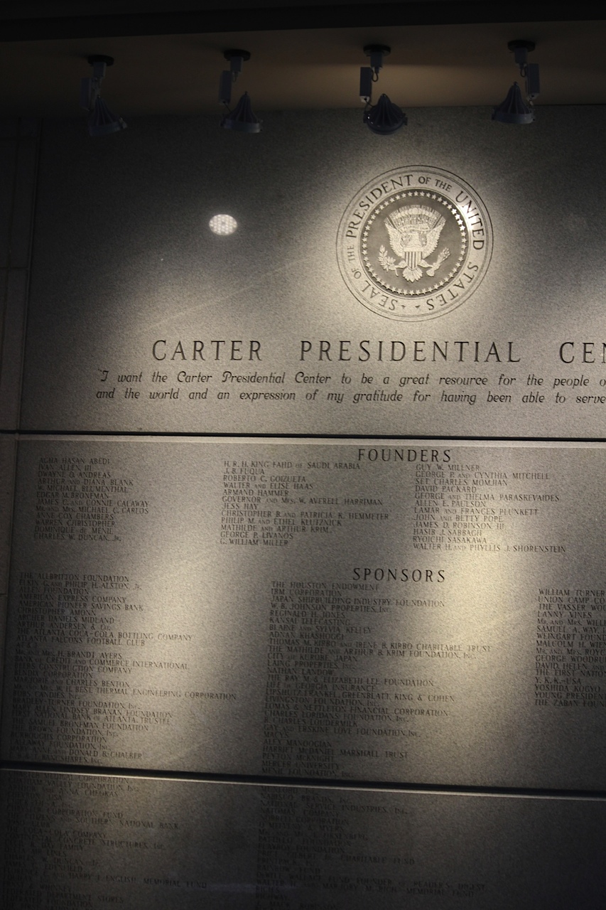 On April 17, 2013, the Atlanta Chapter of ARCS Foundation visited the Carter Presidential Center in Atlanta. The Carter Center takes action on a shared dream of a caring global community. In 1982, President and Mrs. Carter entered into a partnership, with Emory University, that is committed to advancing human rights, alleviating unnecessary suffering, and improving the quality of life for people in more than 65 countries. This partnership is working to create a world where every man, woman, and child has an opportunity to enjoy good health and to live in peace. The day’s activities included a presentation by Dr. John B. Hardman, President and CEO, and a tour of the Jimmy Carter Library & Museum led by Tony Clark, Museum Specialist.