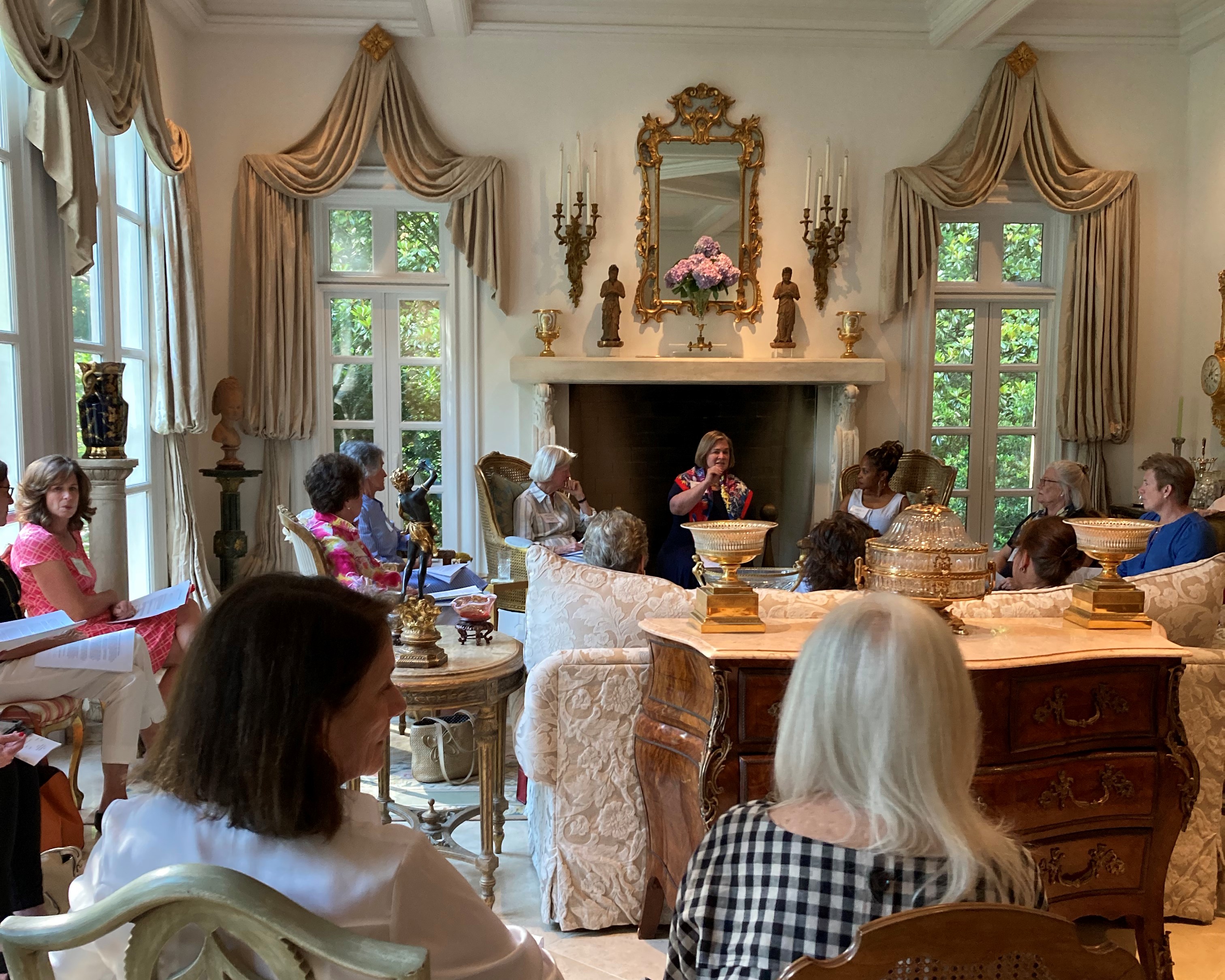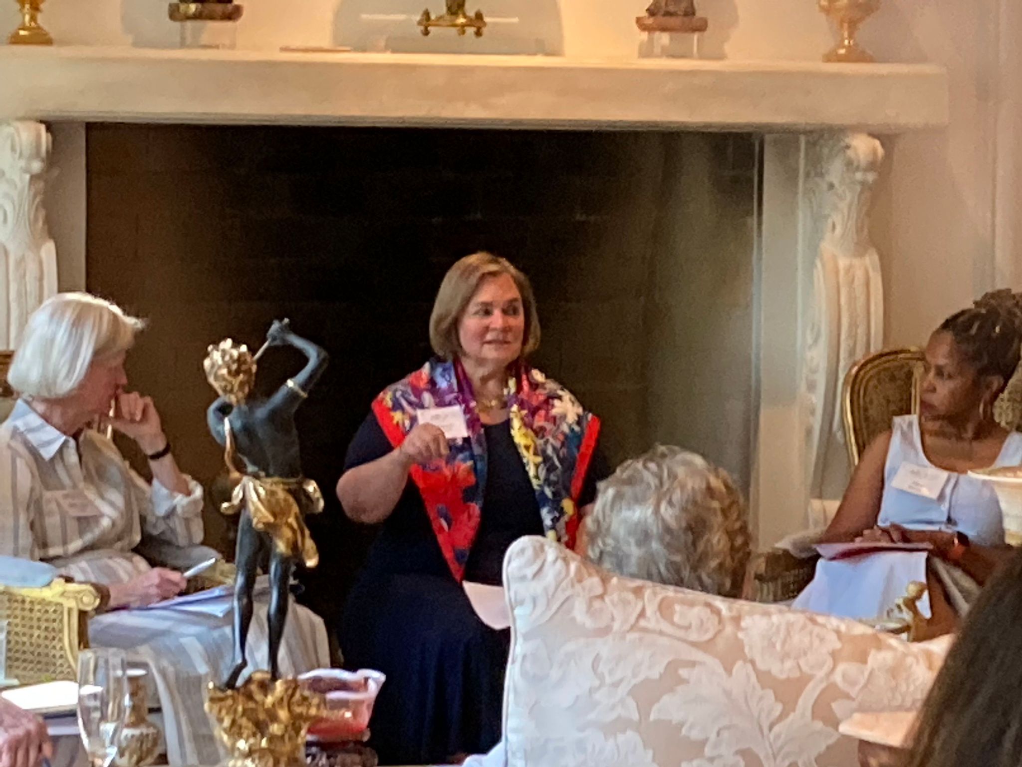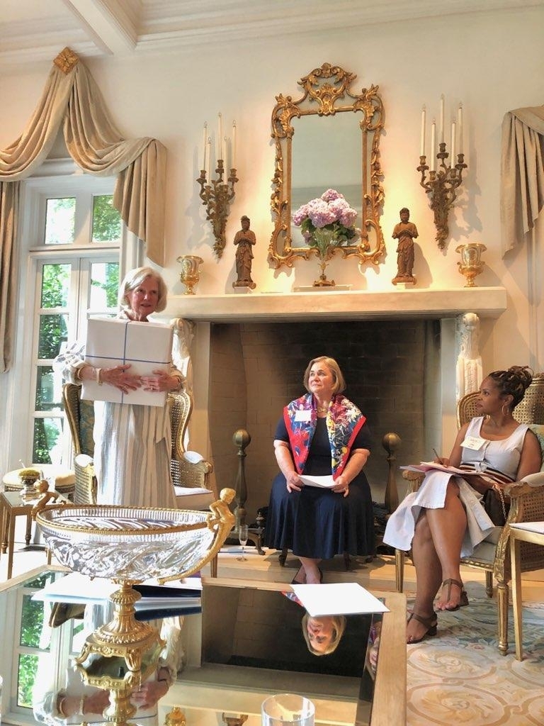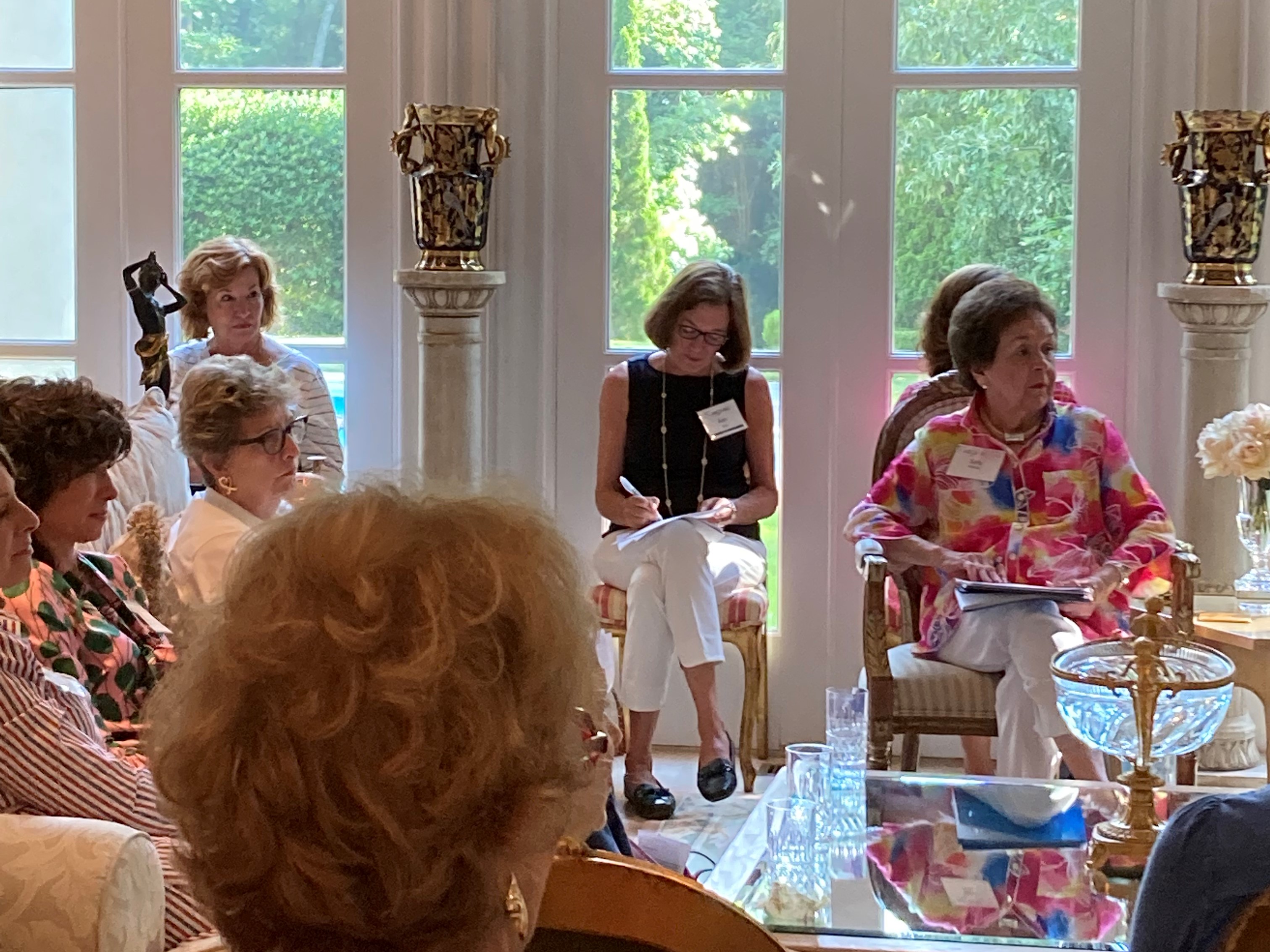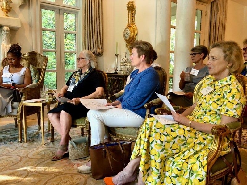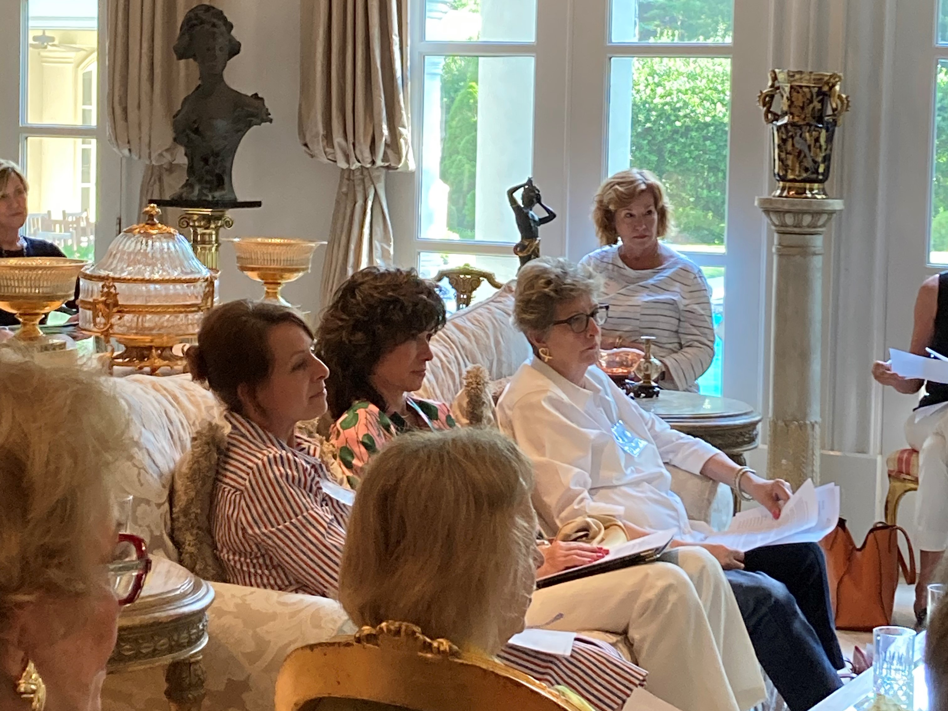 A joint meeting of the 2021-2022 and the 2022-2023 boards was held on June 1 at the home of our outgoing president Leslie Petter. Incoming president Sara Jean Burke presented Leslie with a beautiful Simon Pearce vase to commemorate her two years as president. Celebratory champagne and hors d’oeuvres followed the board meeting.