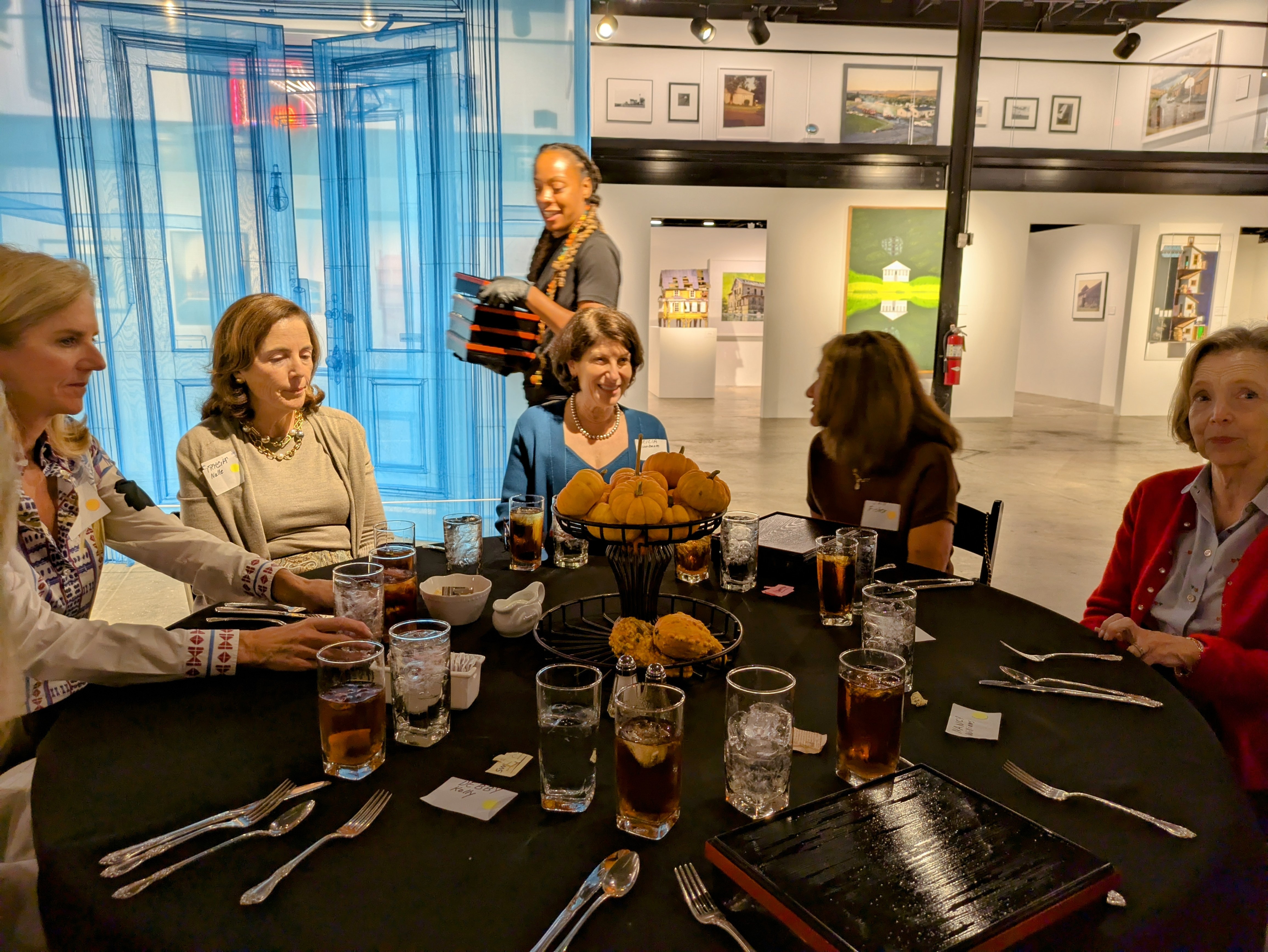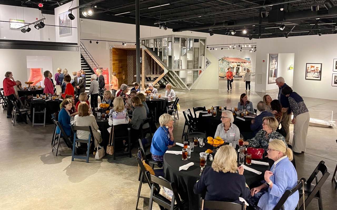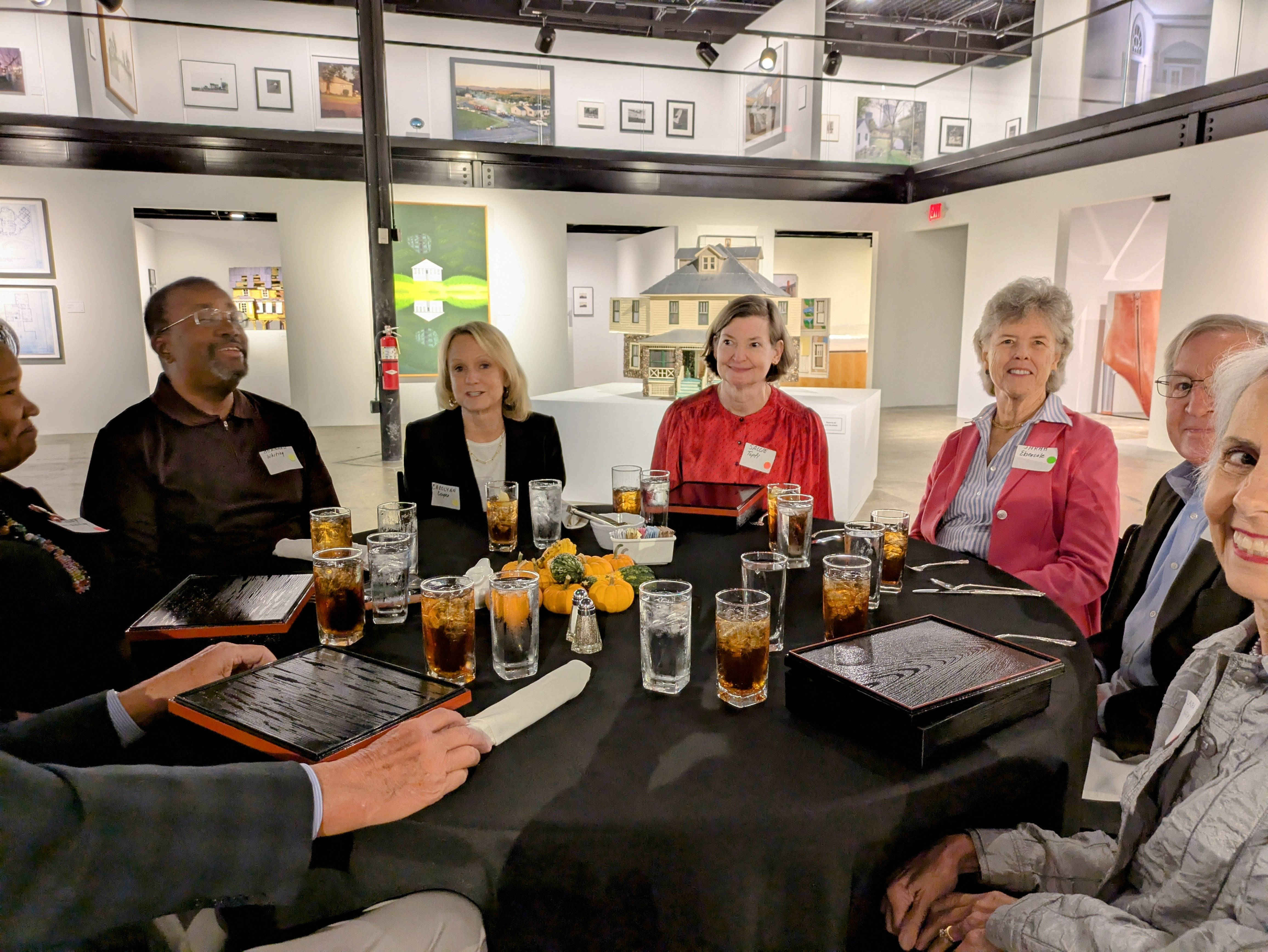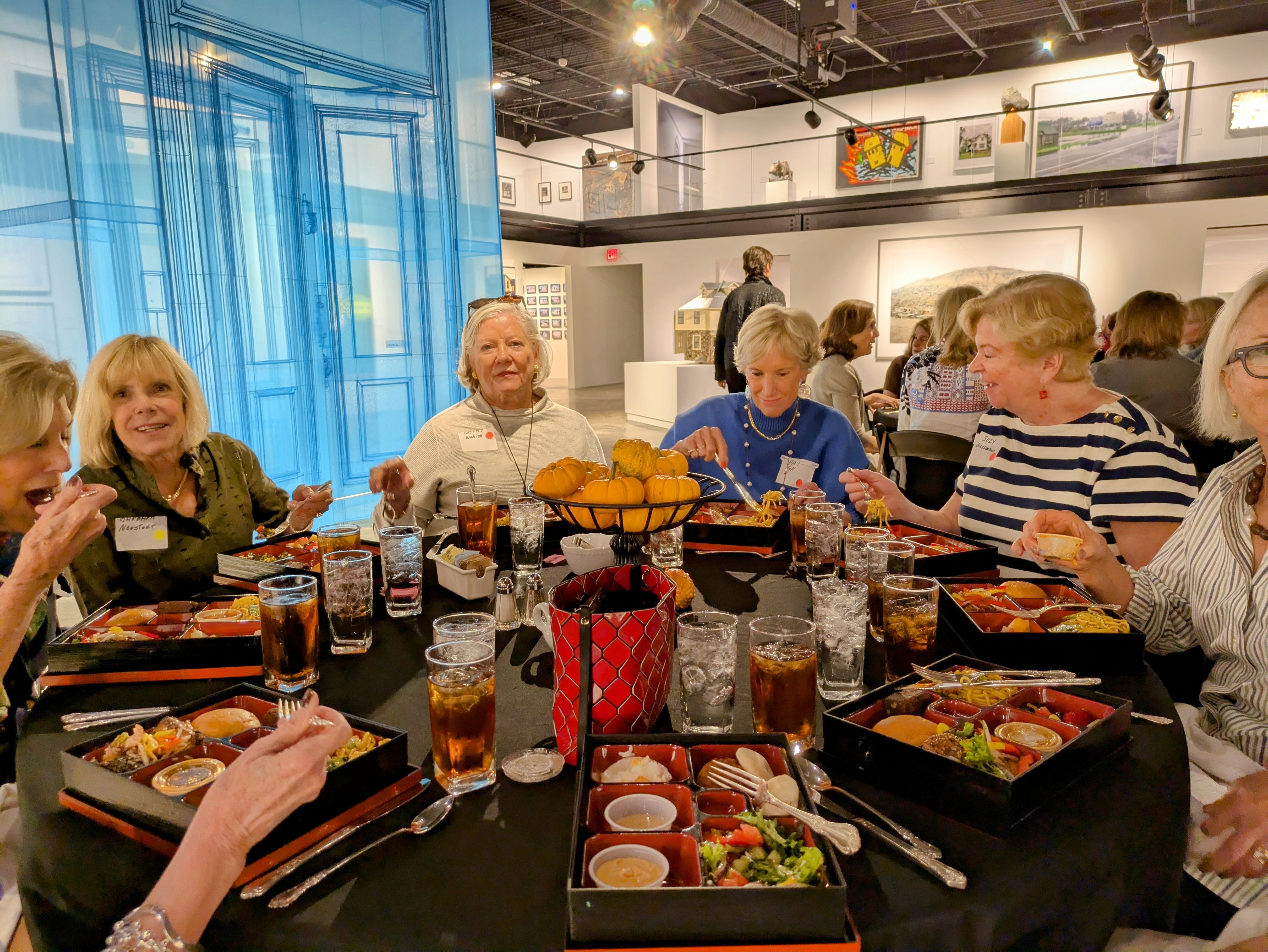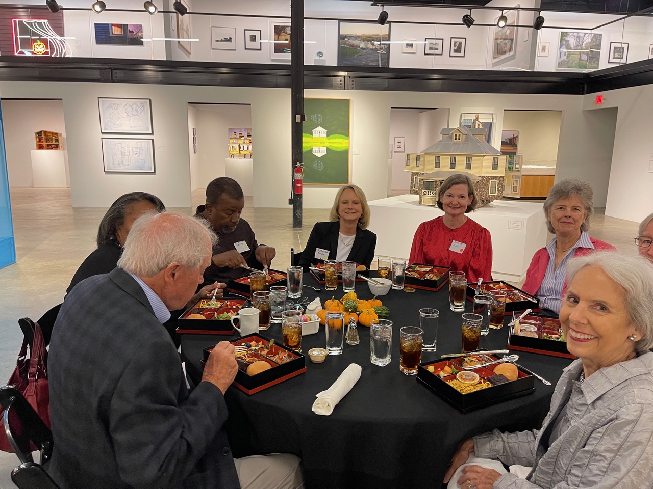 The collection includes painting, photography, sculpture, installation art, and works on paper focusing on images and ideas of house and home, reflecting John Wieland’s career in homebuilding. At the end of our tour, we were treated to an elegant and delicious lunch, giving us a chance to visit with each other and to discuss the many intriguing and thought-provoking works of art.