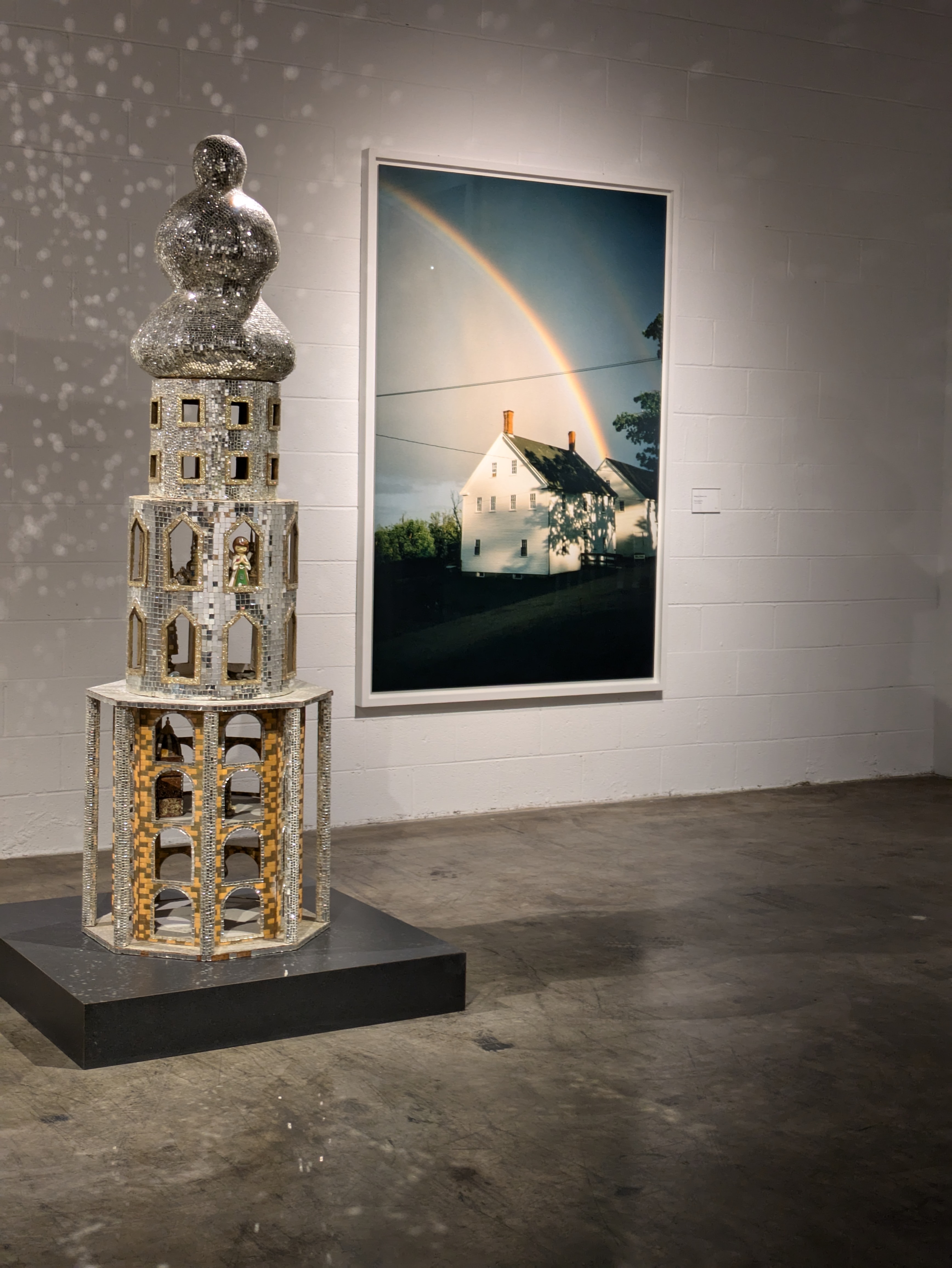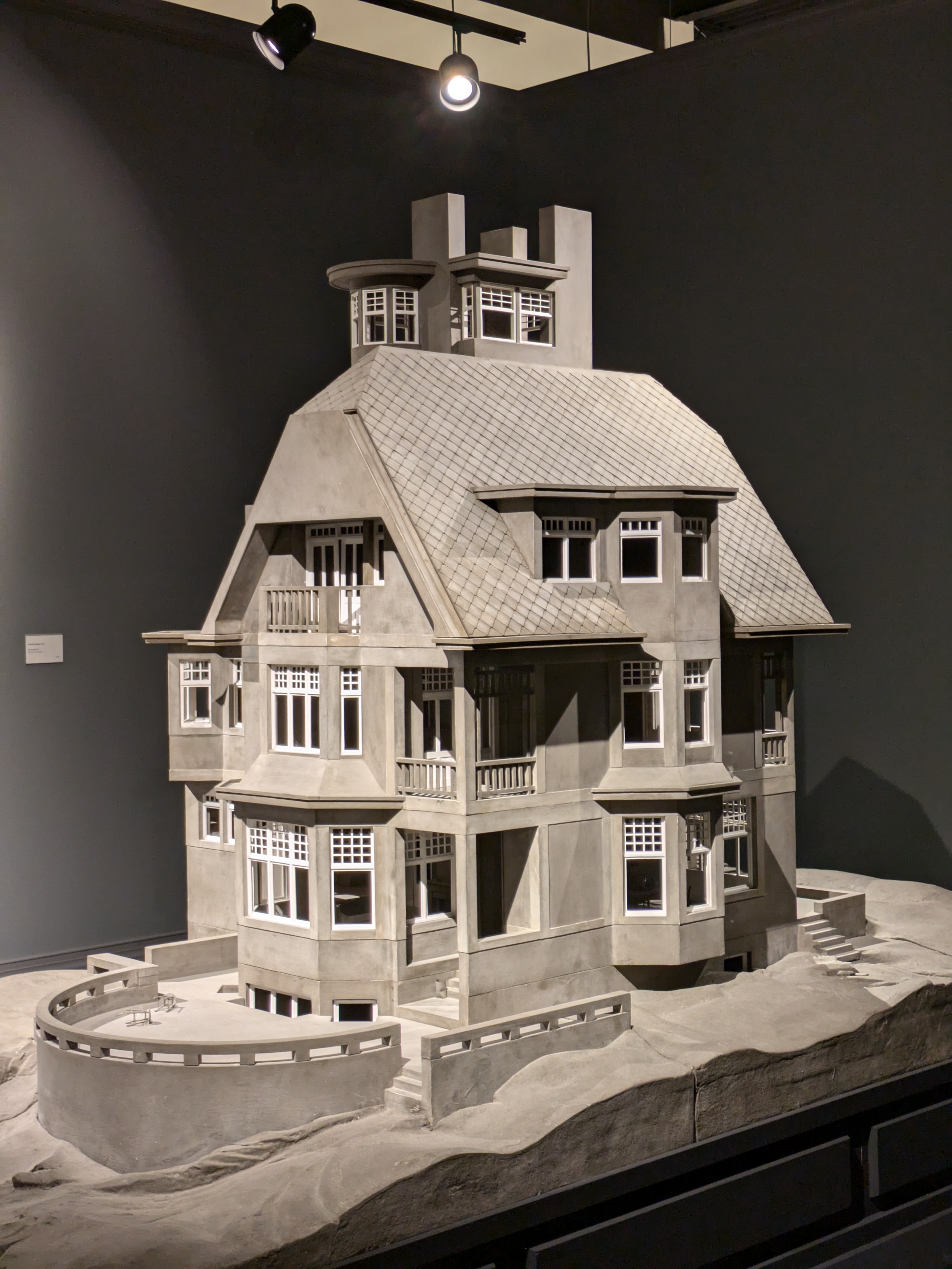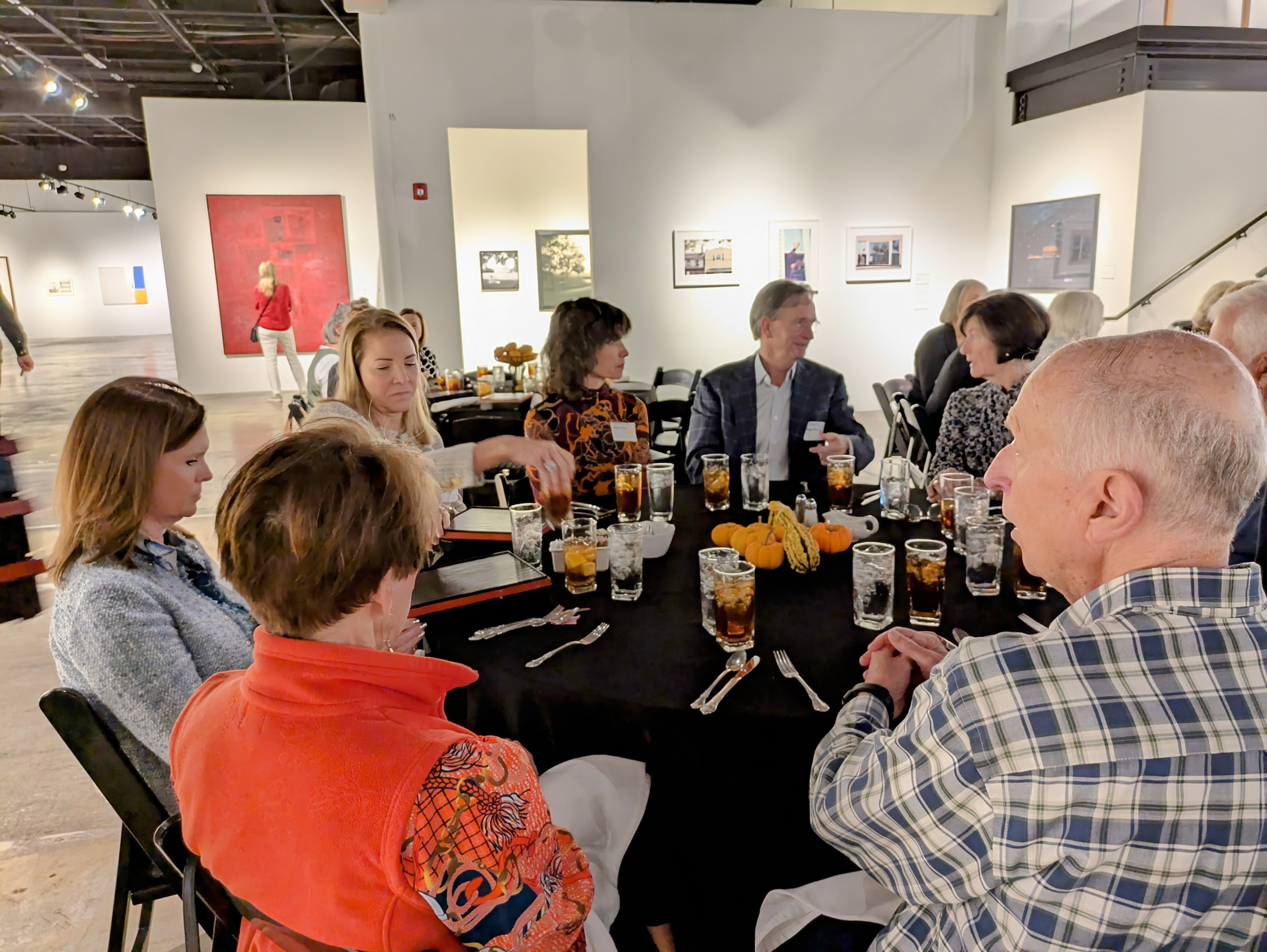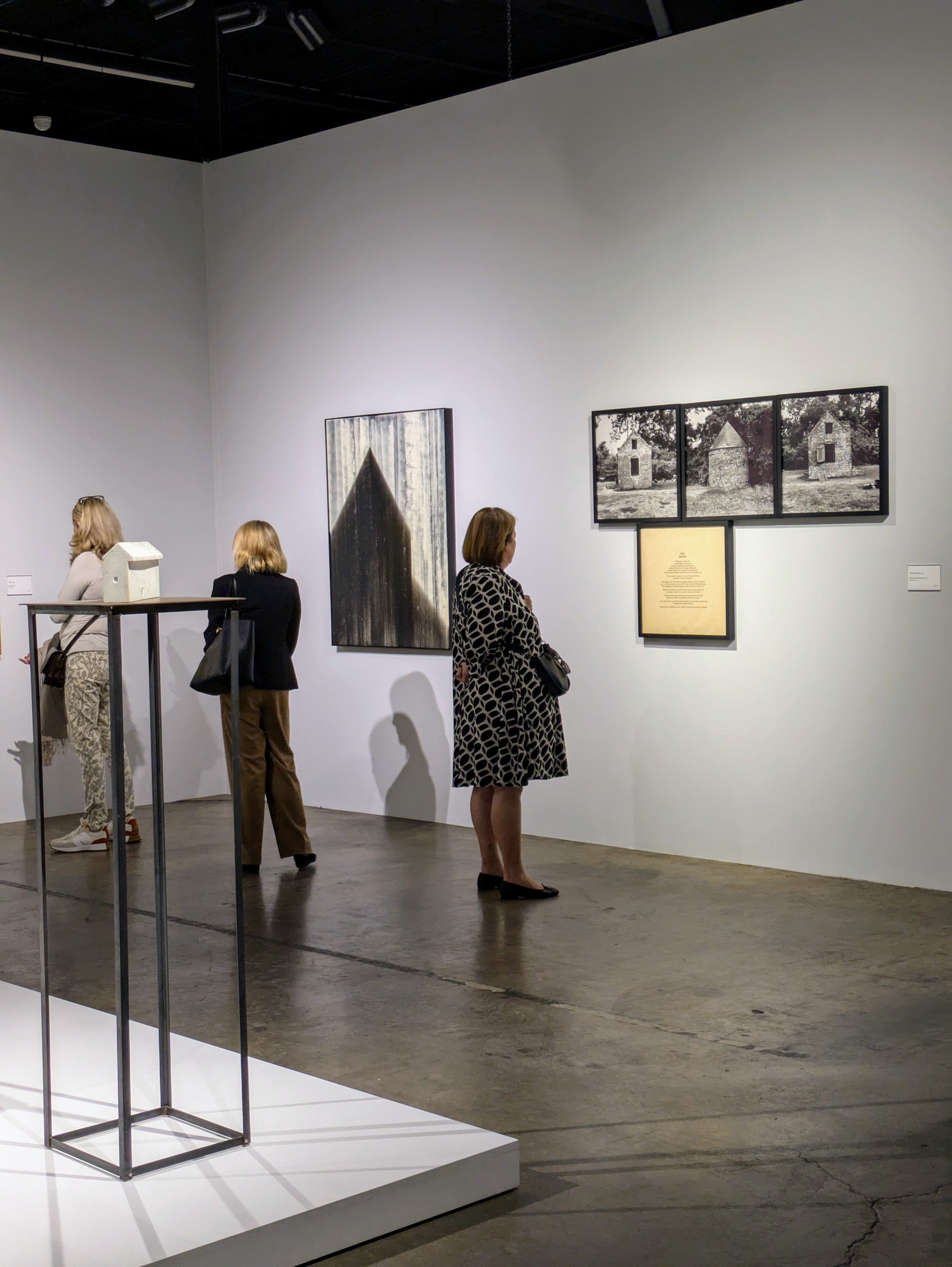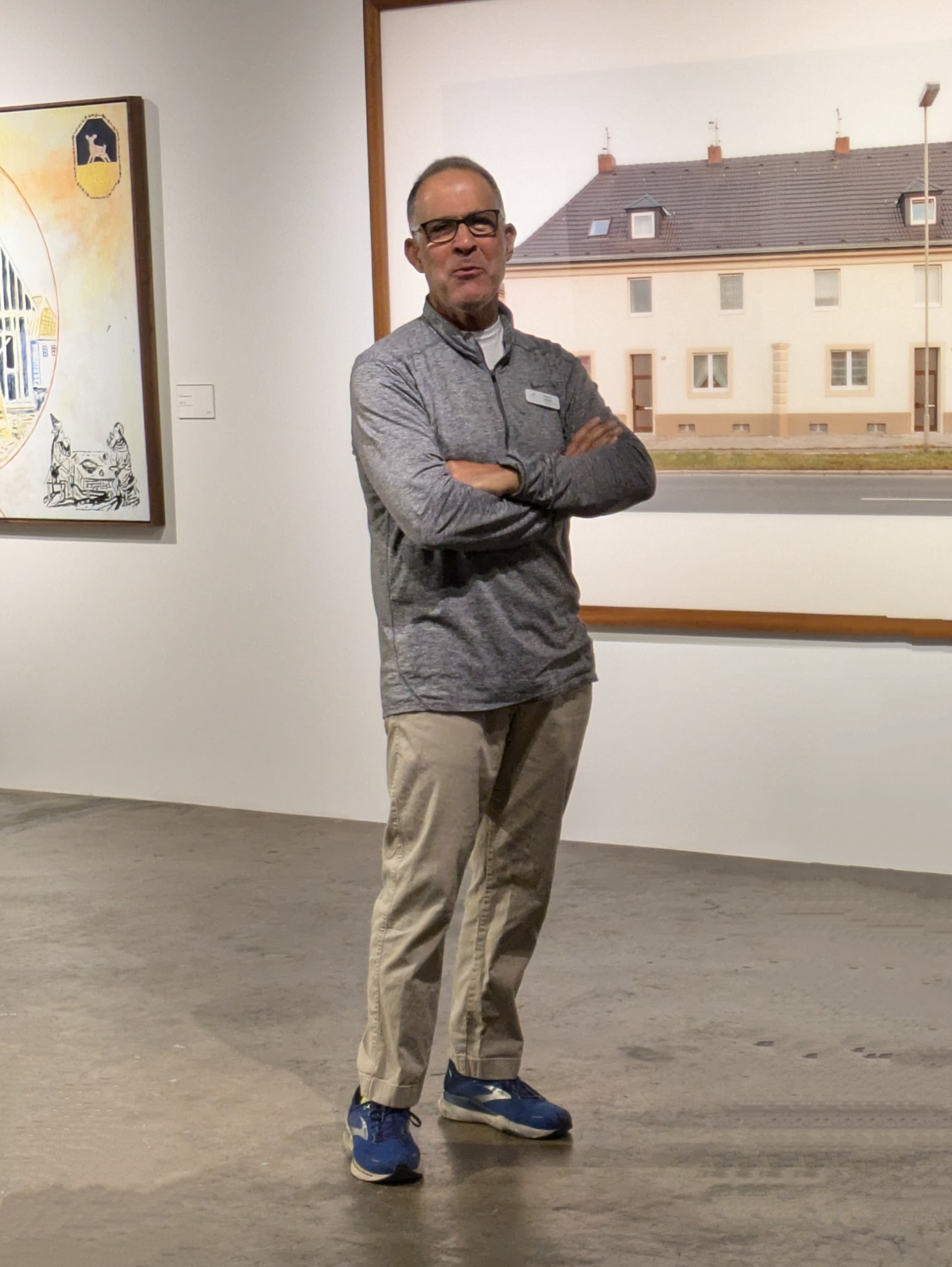 The collection includes painting, photography, sculpture, installation art, and works on paper focusing on images and ideas of house and home, reflecting John Wieland’s career in homebuilding. At the end of our tour, we were treated to an elegant and delicious lunch, giving us a chance to visit with each other and to discuss the many intriguing and thought-provoking works of art.