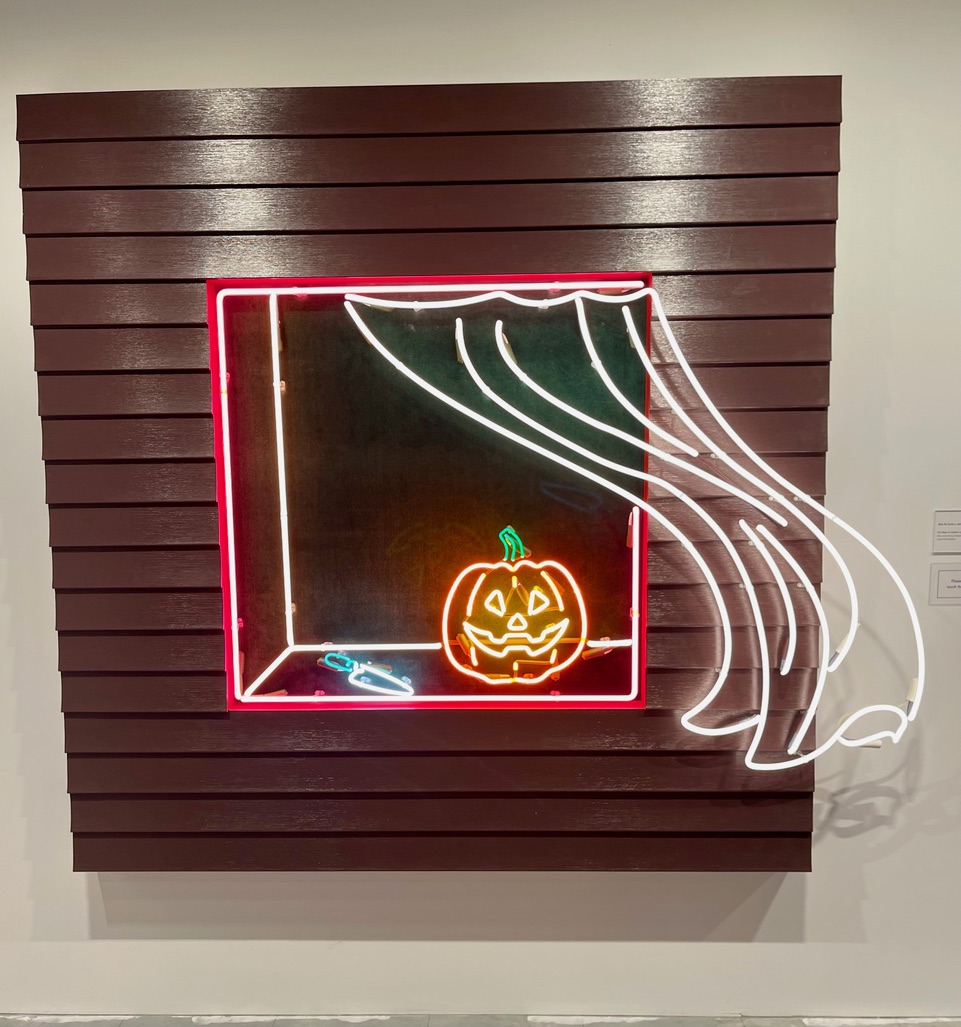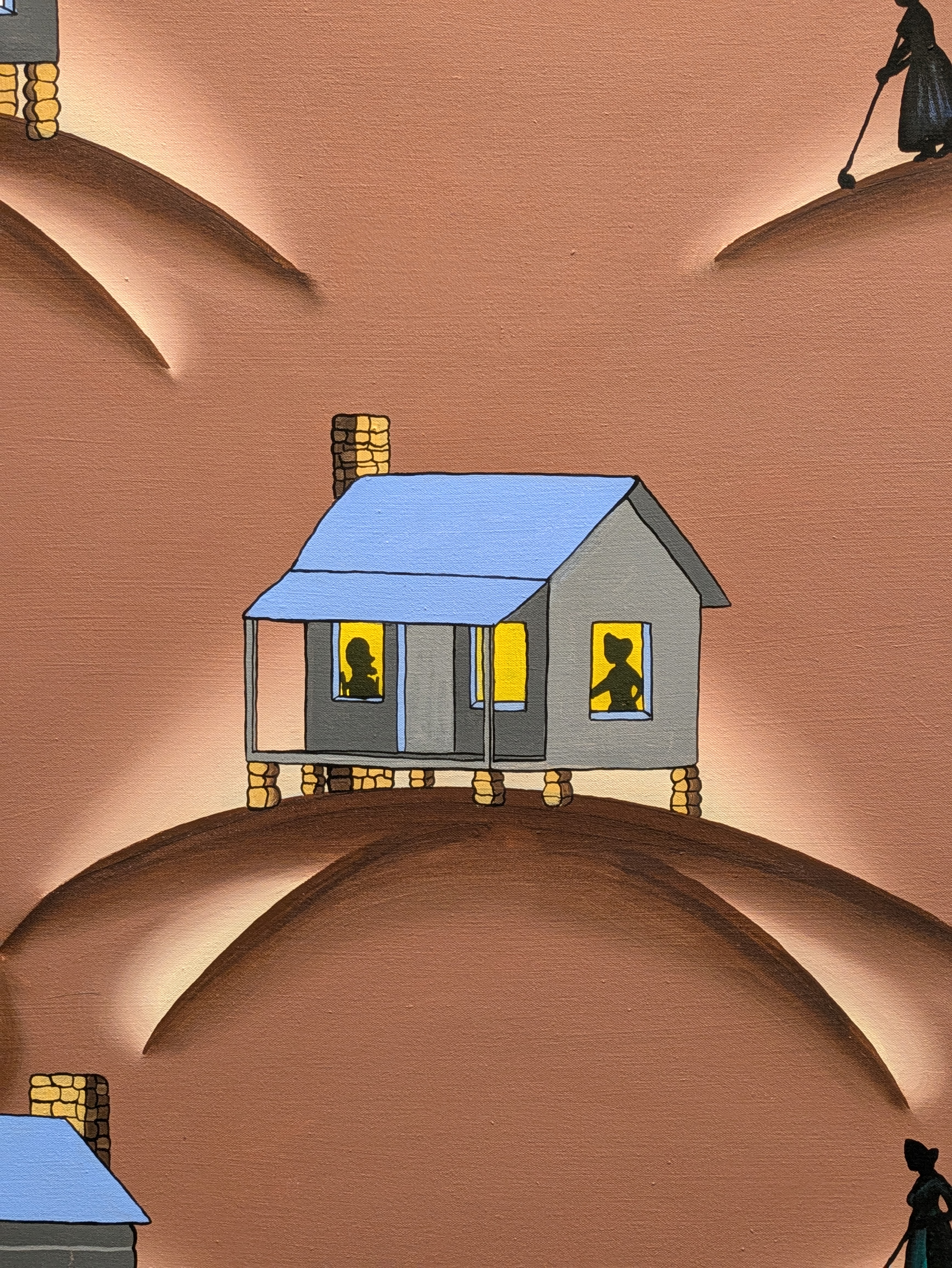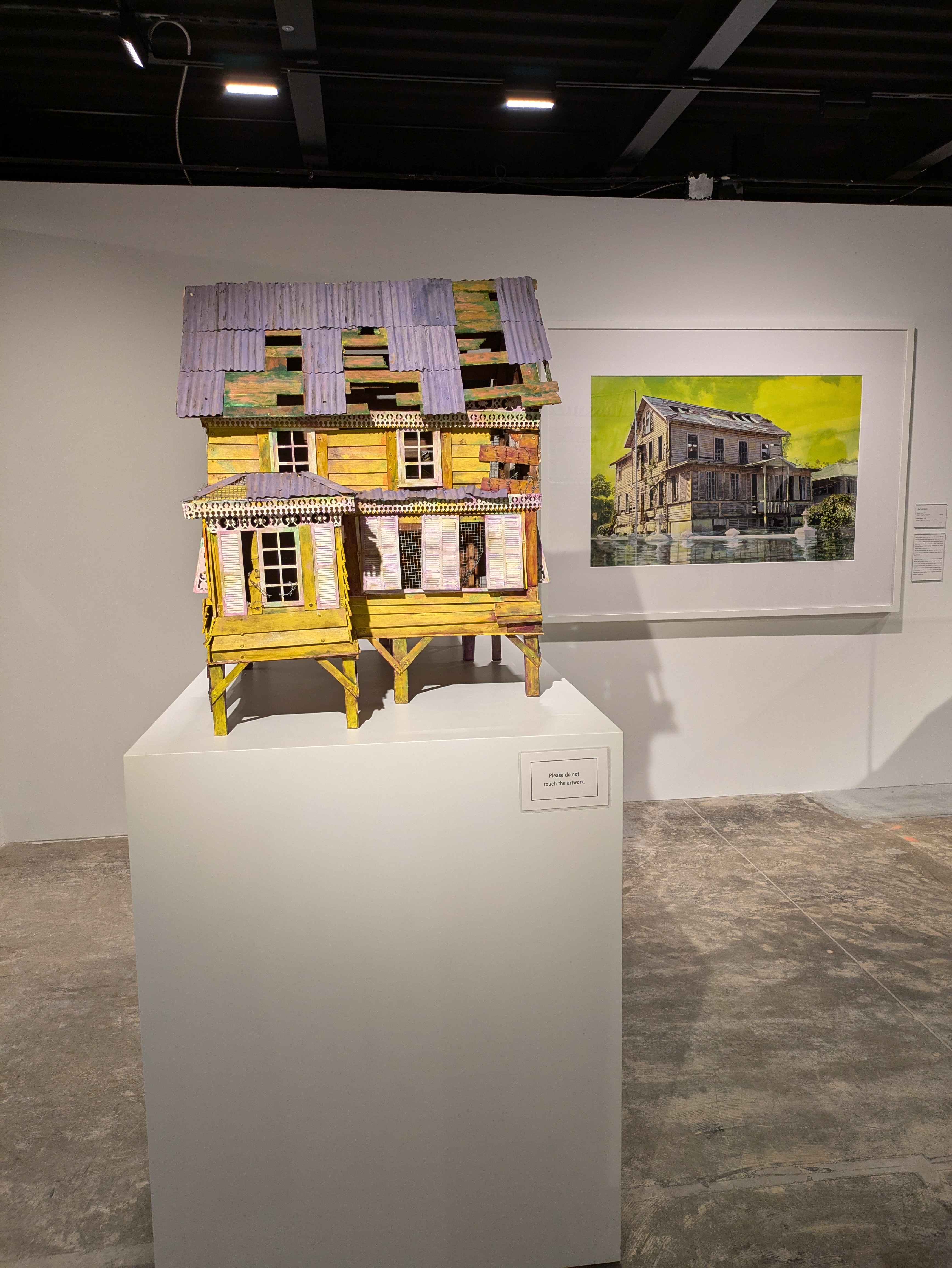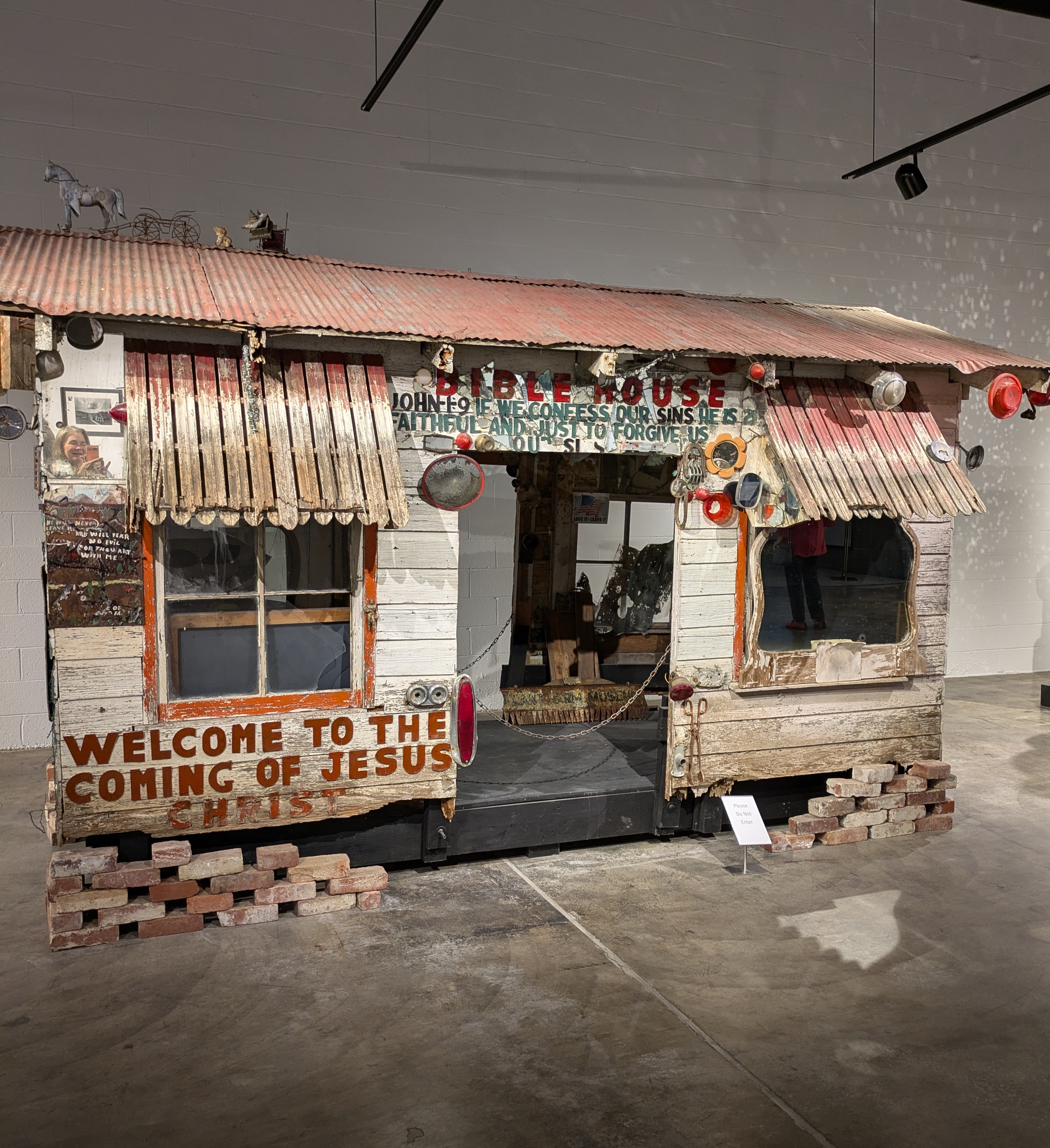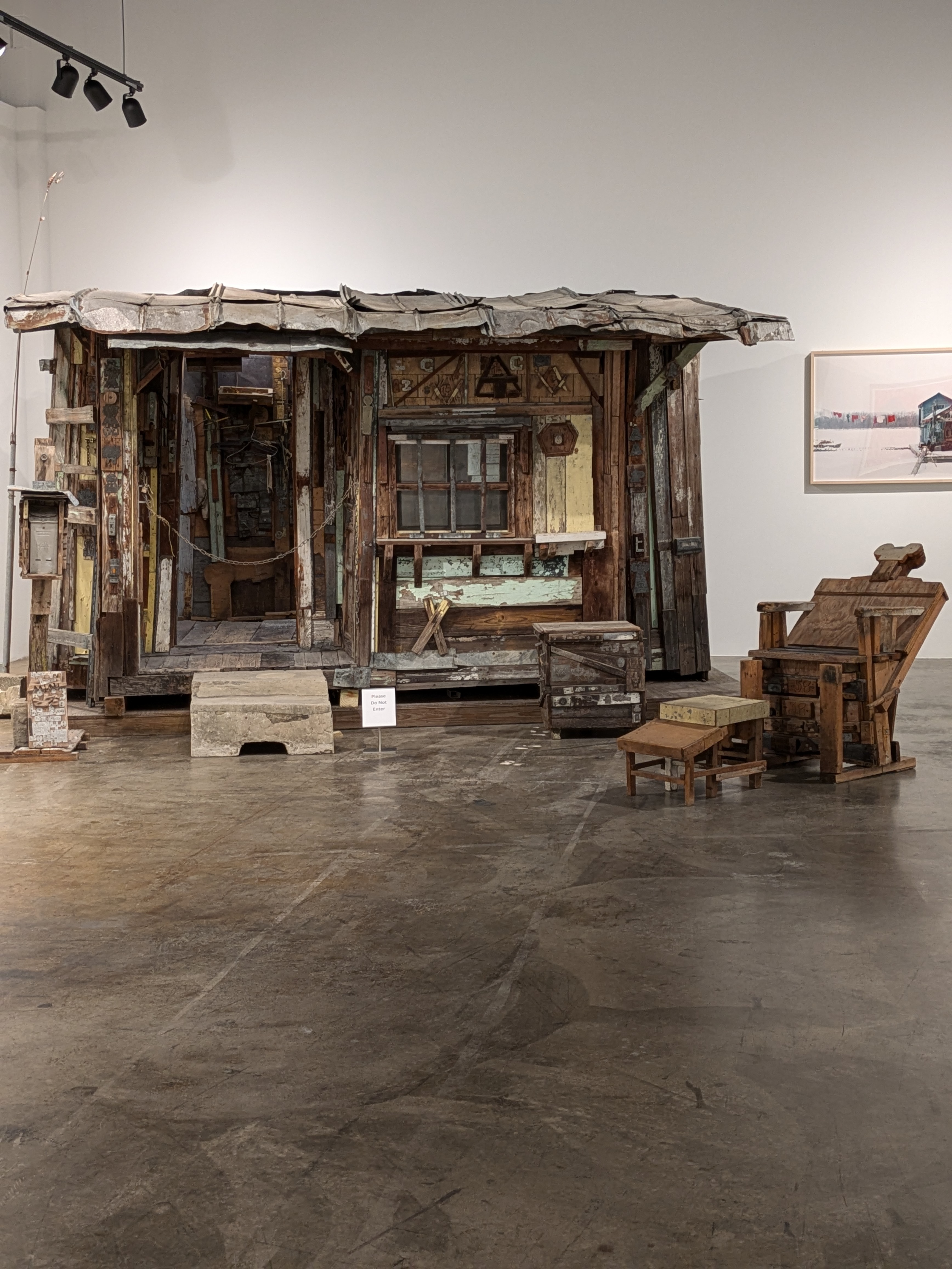 The collection includes painting, photography, sculpture, installation art, and works on paper focusing on images and ideas of house and home, reflecting John Wieland’s career in homebuilding. At the end of our tour, we were treated to an elegant and delicious lunch, giving us a chance to visit with each other and to discuss the many intriguing and thought-provoking works of art.