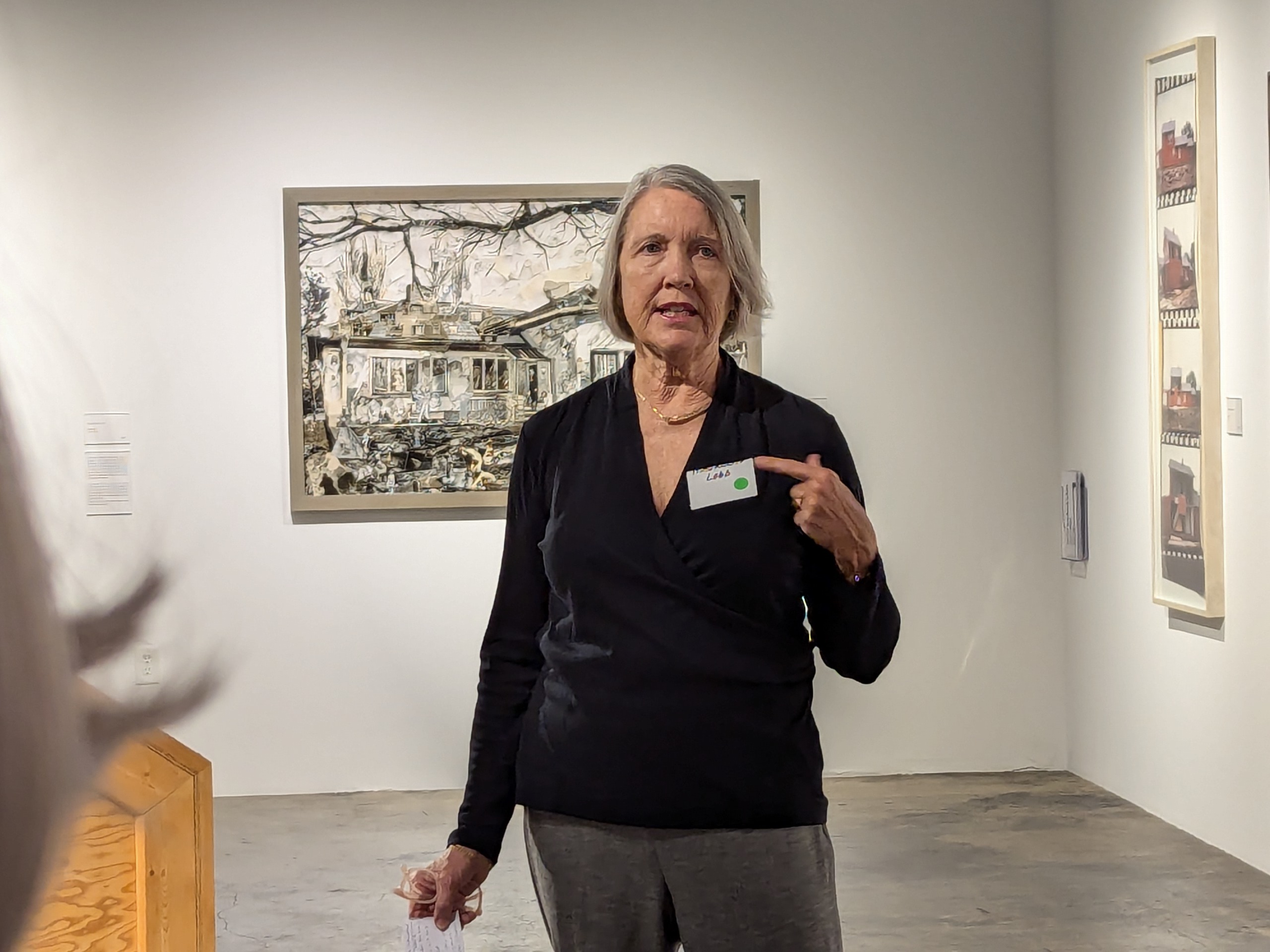 In October 2024, ARCS members and their guests had the rare opportunity to see the private collection of Sue and John Wieland at The Warehouse in the Westside District. This was an especially meaningful field trip for ARCS members, as many of us remember Sue Wieland as a friend and former ARCS member. Debbie Liss opened the tour with her warm recollections of Sue Wieland.